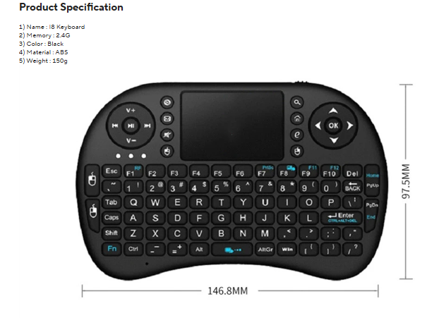 I8 Mini Wireless Keyboard 2.4G Air Mouse Remote To..