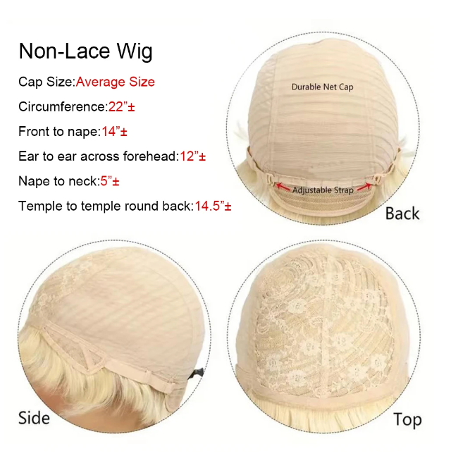613 Blonde 100% Human Hair Pixie Cut Wig Wavy Braz..